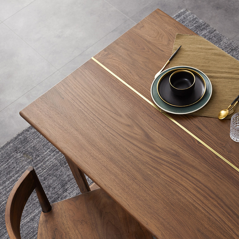 Mummy furniture full solid wood dining table Black walnuts dining table Nordic minimalist light and luxurious rectangular bench wood table