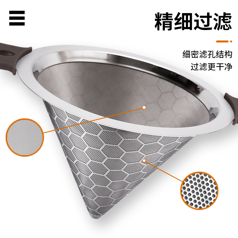 Tea filter stainless steel milk tea insulation bucket filter special tea powder funnel for milk tea shop ultra-fine double ears