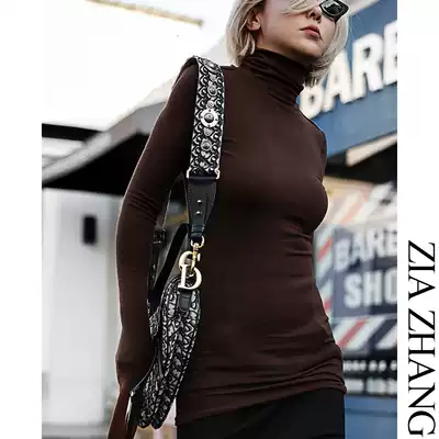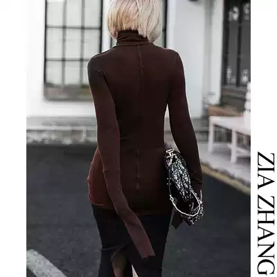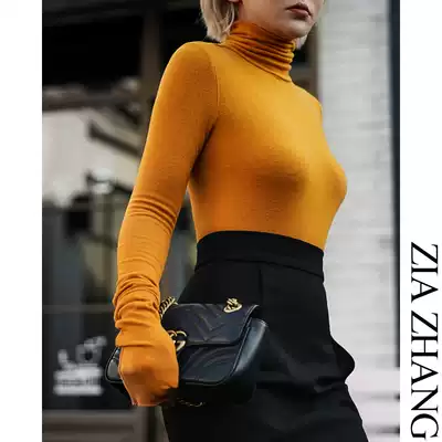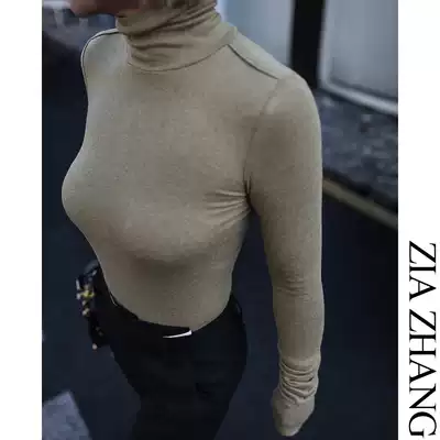 Z boss suede wool blend high collar slim T-shirt female medium long version bag hip a stitch warm base shirt