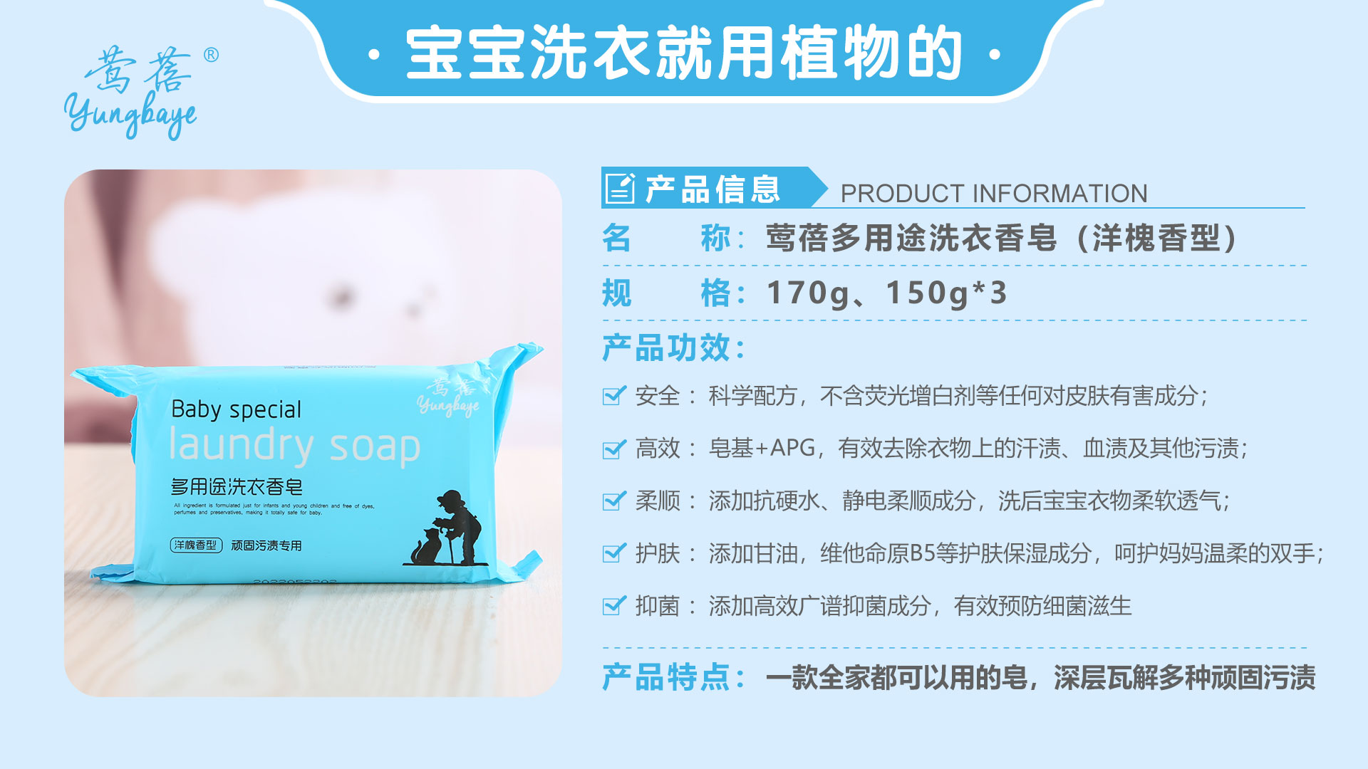 Ying Bei baby multi-purpose laundry soap 170g to remove all kinds of stains of baby clothes do not hurt hand fragrance
