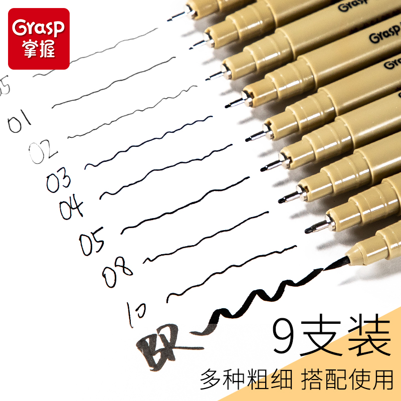 Master the needle pen is a 9-pack waterproof hook pen needle pen line design hook pen hand-drawn cartoon special pen drawing pen stick stroke pen drawing pen drawing pen can draw straight line pen