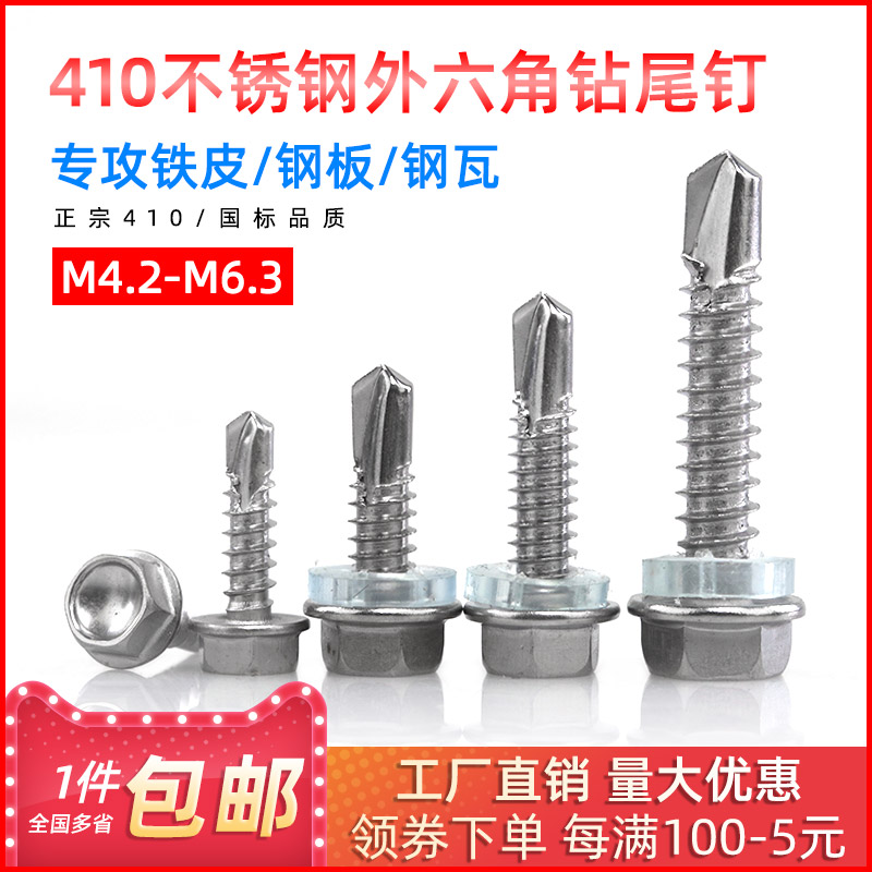 410 stainless steel hexagonal drill tail nail dovetail self-drilling self-drilling screws M4 2 M4 8 M5 5 M6 3mm