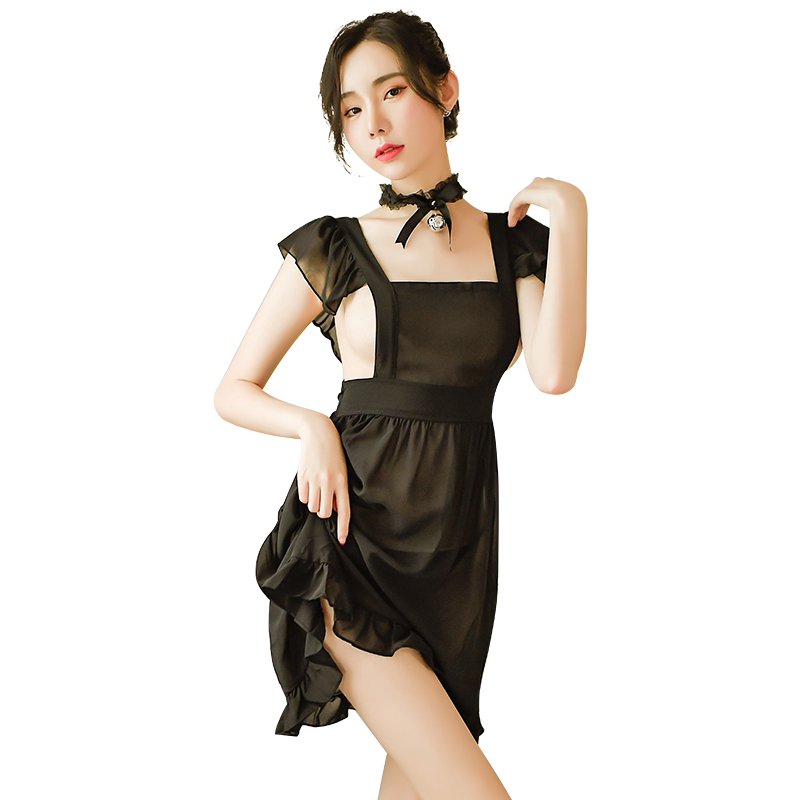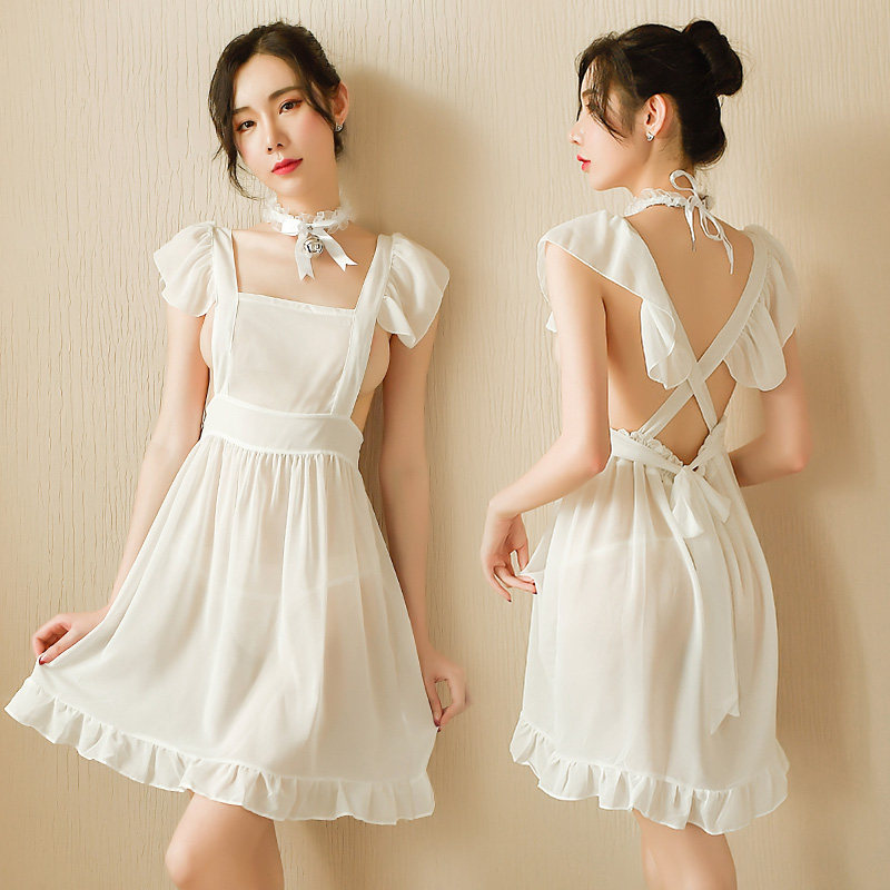 Chiffon maid see-through backless sexy lingerie women's uniform passion suit temptation short nightdress intercourse tease free to take off