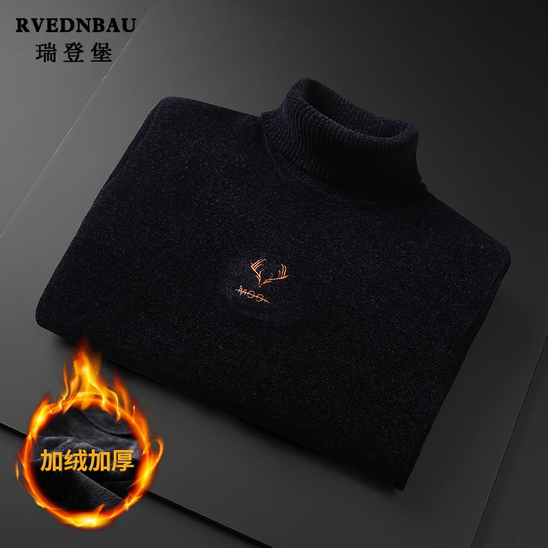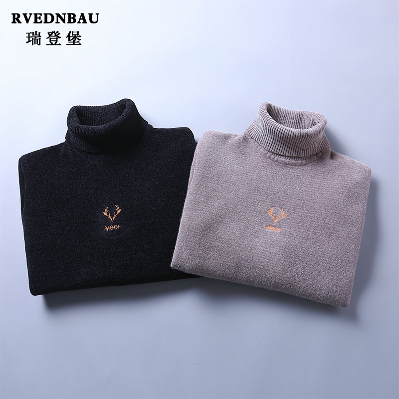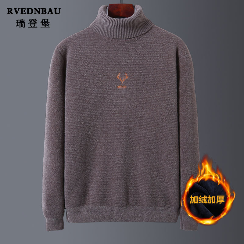 Winter imitation mink velvet plus velvet thickened men's lapel solid color warm sweater Korean version of men's slim sweater clothes