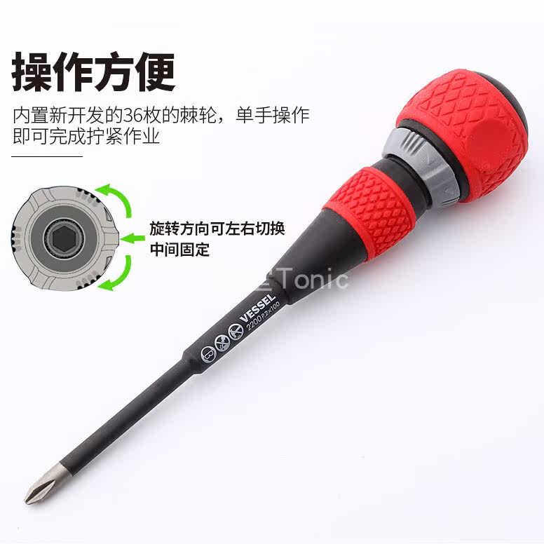 VESSEL Weiwei Japan Original Fitted Ratchet Screwdriver Electrician Import Positive Reversal Screw Driver NO 2200