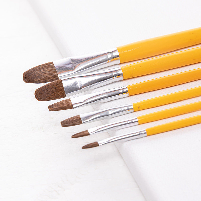 6 sets of sleeves Yellow Rod Oil Paintbrush Water Pink propylene Pigment Examination Exercise Fine Arts Paintbrush