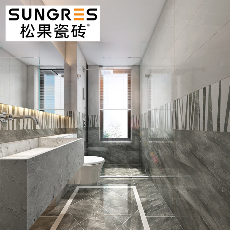Pine Nuts Dark Grey Bright Light Marble Glazed Face Brick Makeup Room Porcelain Sheet Kitchen Balcony Non-slip Floor Tiles 300600