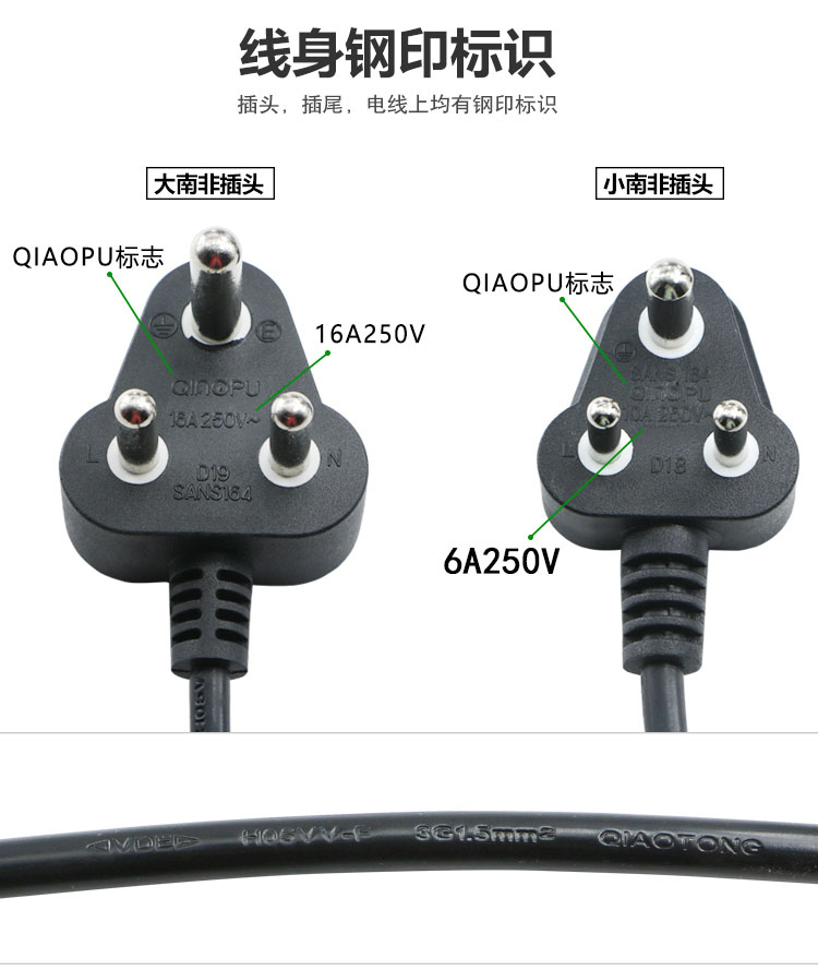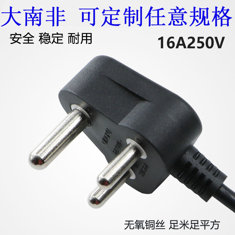 Pure copper size South Africa plug power cord 3 Core 0 75 1 5 squared 1 8 m India South African Pint finish line
