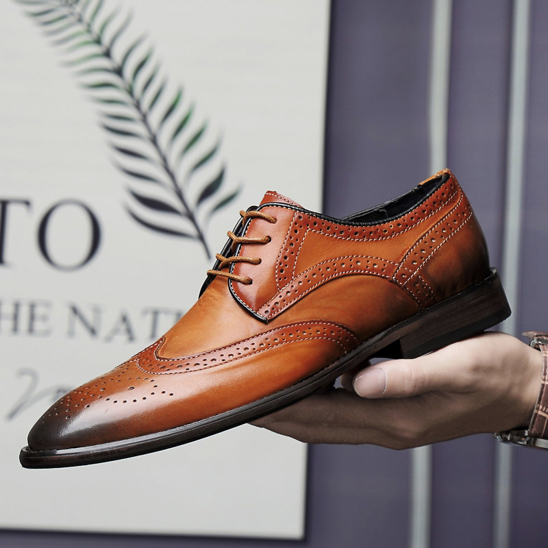 Classic brand Brock men's leather toe top layer cowhide small size men's shoes 35 carved 36 gentlemen 37 British leather shoes
