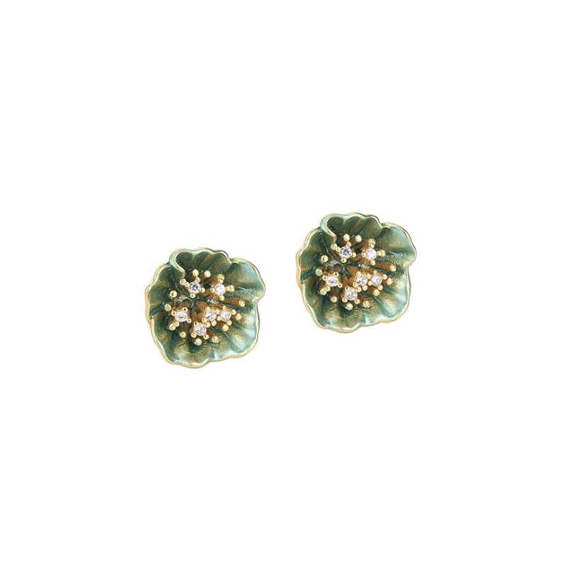 Hayery Irving new minimalist ear pin S925 pure silver ancient wind green lotus earrings retro temperament petals