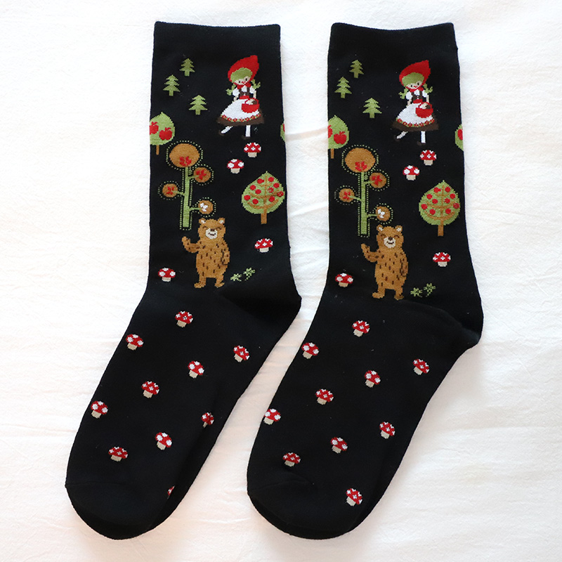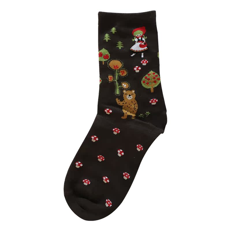 Autumn Winter Pure Cotton Women Socks Cute Cartoon Sweatshirt Lady Midbarrel Socks C026