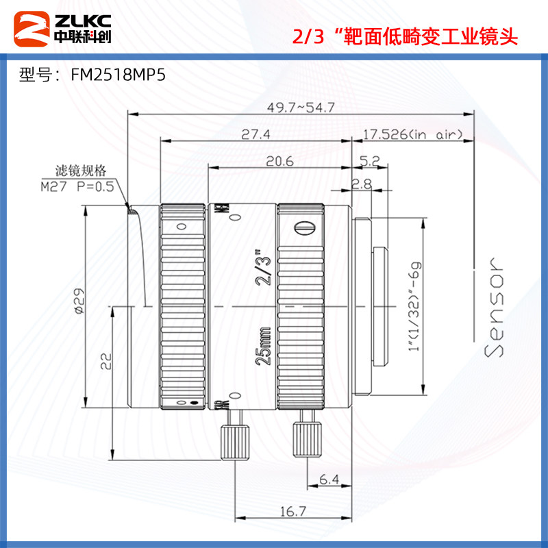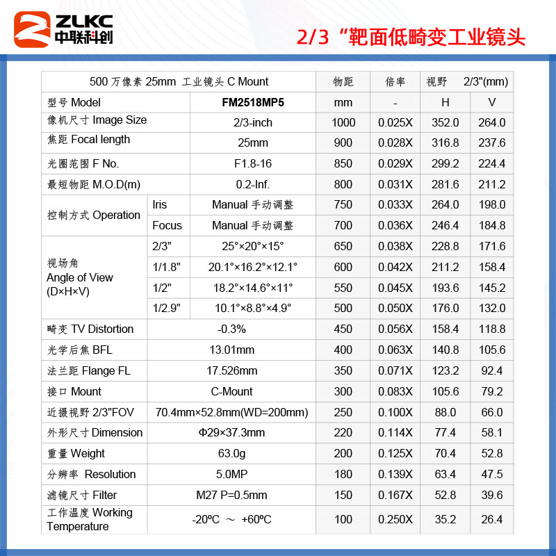 Machine Vision Lens Industrial Lens 25mm Dinggio 2 3 inches HD 5 million C Mouth Industrial Camera Accessories