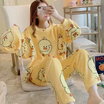 Coral velvet pajamas women's autumn and winter thickened plus velvet warm sweet and cute cartoon Korean flannel suit winter