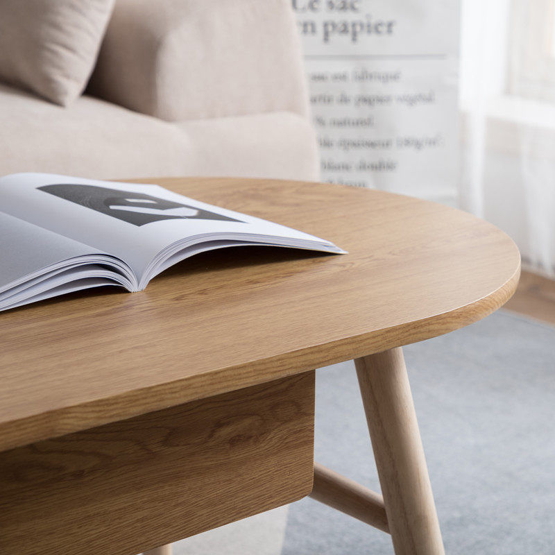 Wooden coffee table Nordic style oval living room bedroom simple multifunctional coffee table artistic style creative simple wooden