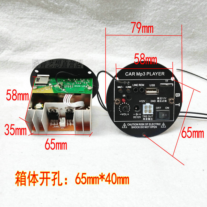 4 inch 5 inch wireless Bluetooth low sound gun power amplifier board 12V on-board card core USB TF MP3 radio 12 V