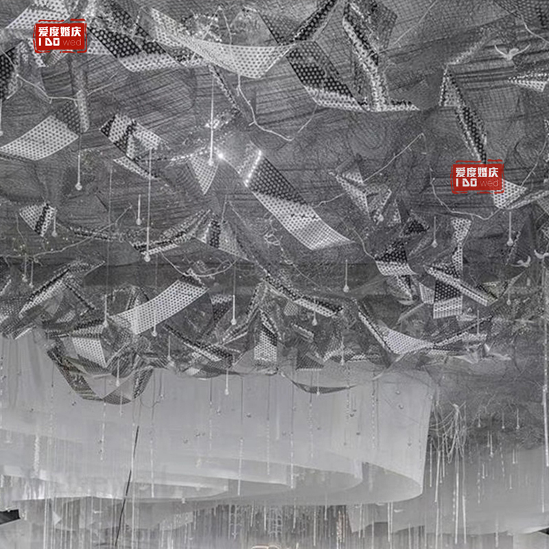 Creative Patterned Grid Arrangement Wedding props Aerial Decoration Dazzling Bright Pieces With Glistening Flash Suspended Ceiling Styling Mesh