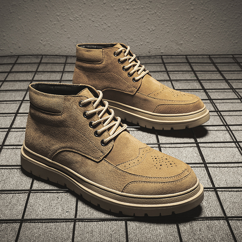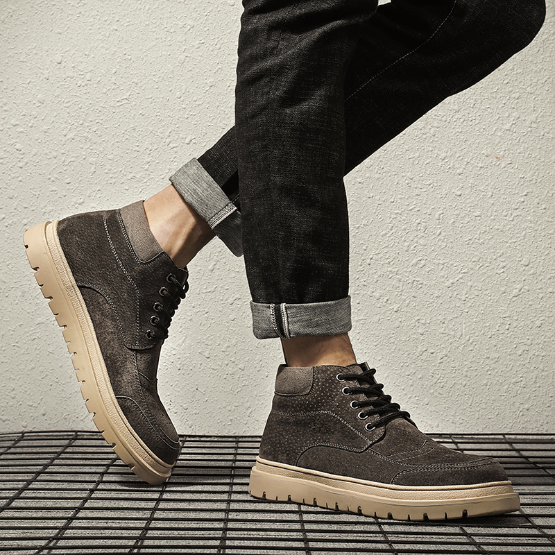Block Boots England High Help Shoes Tide Brand Frosted Leather and Velvet Martin Boots Men's Shoes Winter Tide Shoes