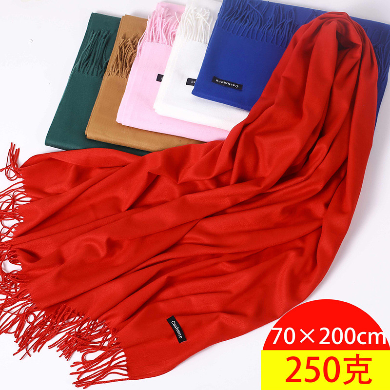 Cashmere scarf in autumn and winter simulated cashmere Chinese red scarf cashmere pure color stream cashmere shawl 250g