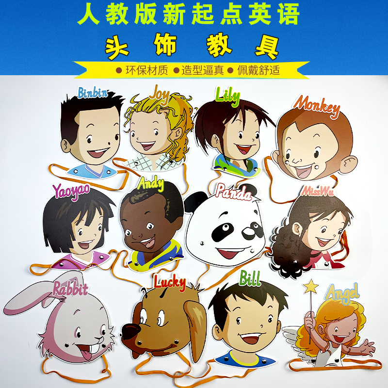 People's Education Edition first grade new starting point primary school English characters headwear teaching aids open class props performance mask card