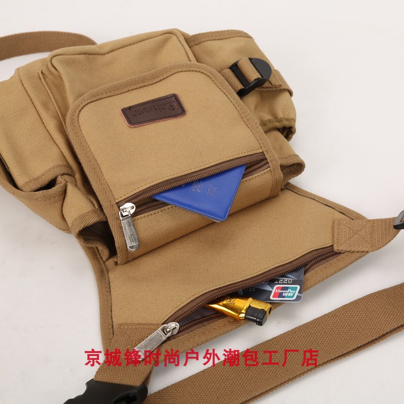 Men's and women's canvas motorcycle leg bag multi-function fishing outdoor bag waist bag Cycling fan waist and leg bag Fitness delivery bag