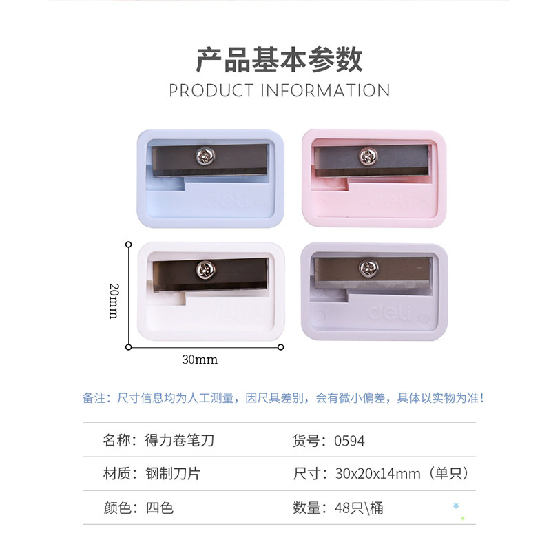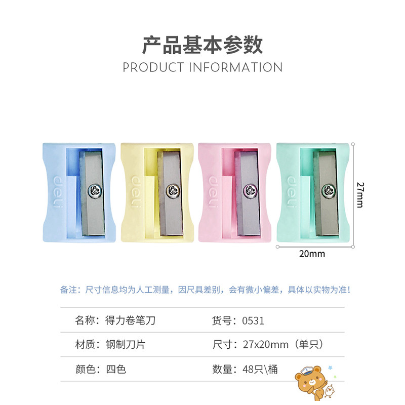Deli pencil sharpener Colorful mini small pencil sharpener for primary school children kindergarten with cute small portable pen sharpener Manual simple rotary pen knife Candy color color pencil sharpener stationery supplies
