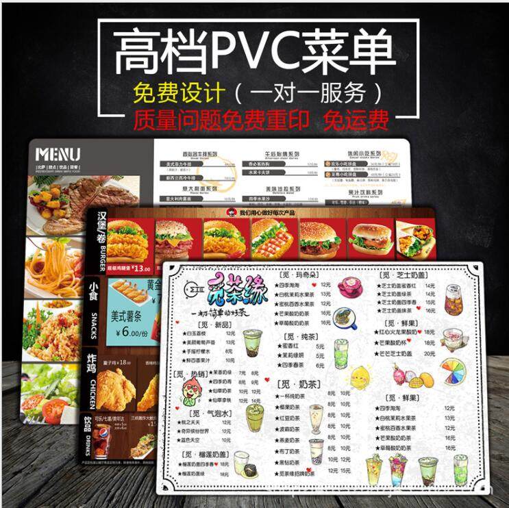 PVC menu design to make milk tea shopbarbecue deck plate display recipe personality hotel price tailored