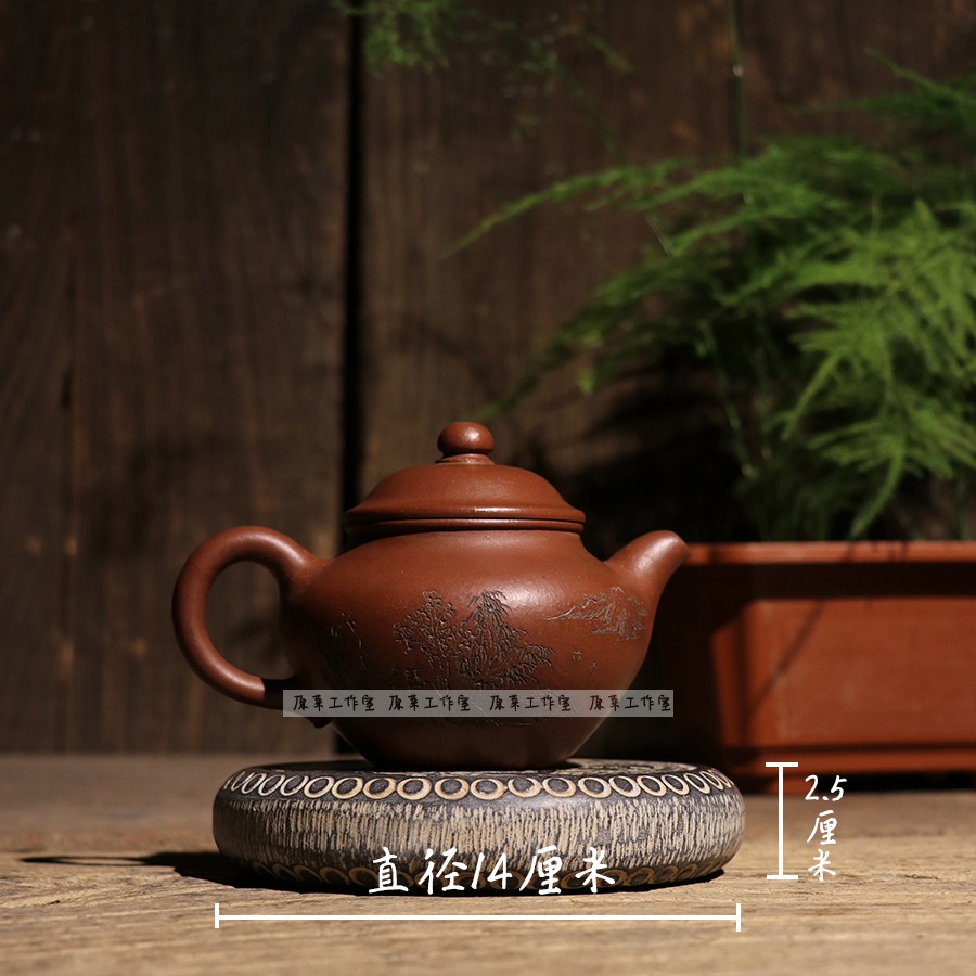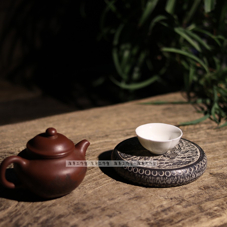 Green Stone Engraving double fish for years with Unicorn moon stone Moon Stone Drum Base Pot bearing tea Undertake Chinese style tea mat