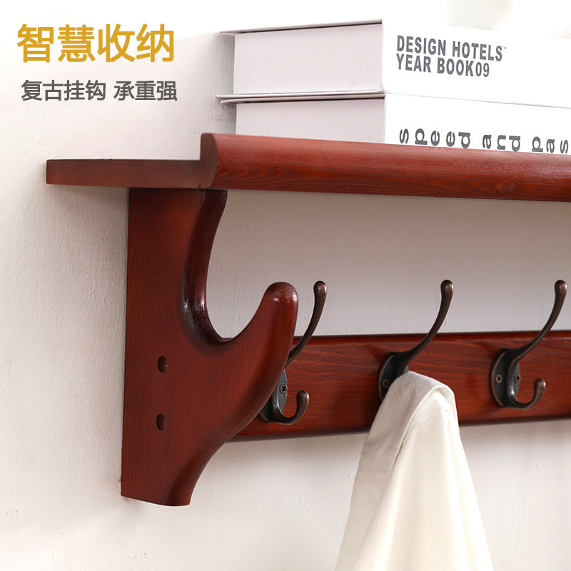 European style hanging hanger at the door Creative wall hanging home bedroom clothes hook entryway solid wood clothing rack