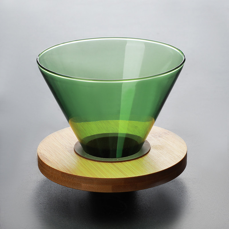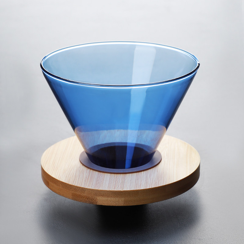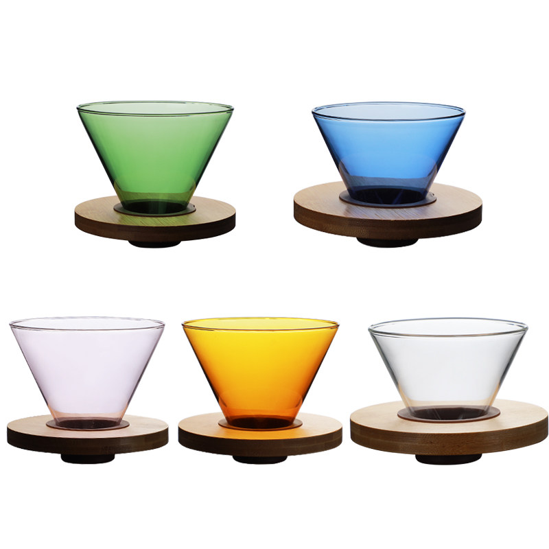 Hand-brewed coffee filter cup color smart glass filter paper cup v60 wooden base funnel cup drip filter