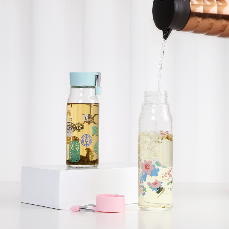 Cup Heat-resistant glass China wind printing cup creative leakage-proof portable tea cup