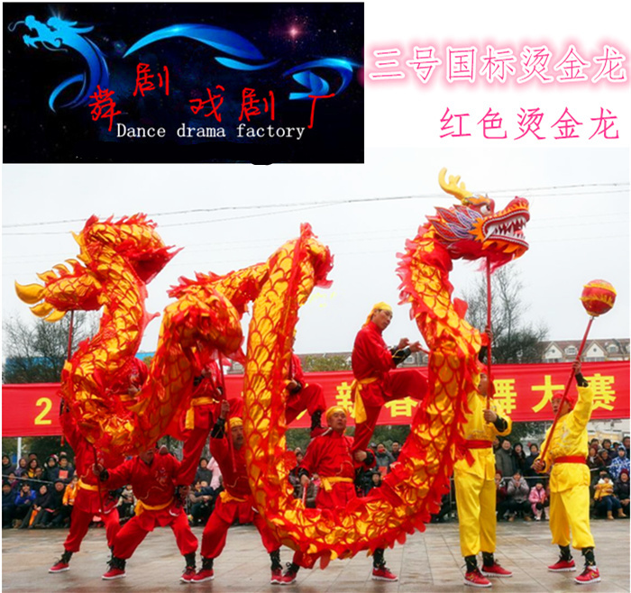 Dragon dance prop No. 3 national standard dragon Lantern Festival supplies Oxford cloth gold stamping dragon wire dragon full dragon dance lion dance