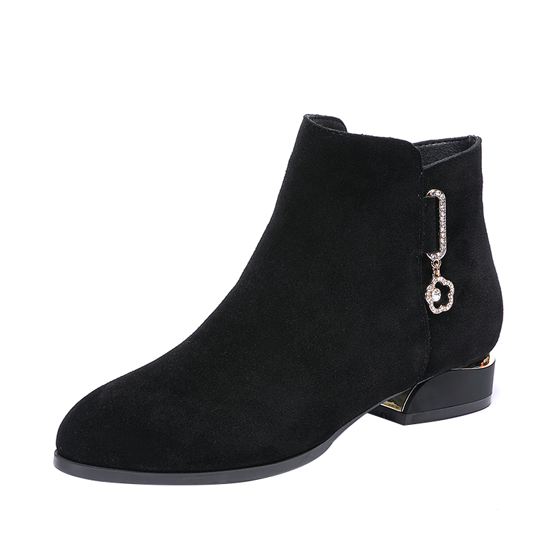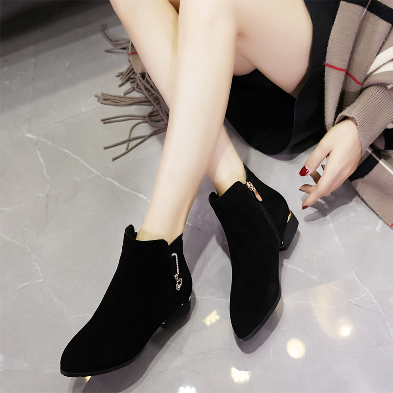 Golden Belle Coarse Boots Women's Autumn and Winter Leather Short Barrel Martins Joker Pointed Scrub Flat Boots