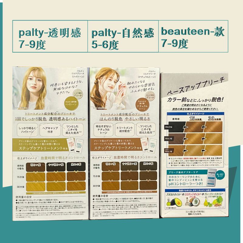 Palty Transparent Sensation Fading Agent 7-9 Degrees Palty Natural Sensation Fading Agent 5-6 Degrees Beauteen New Fading Agent 7-9 Degrees Beyting-Fading Agent (Bleaching agent)