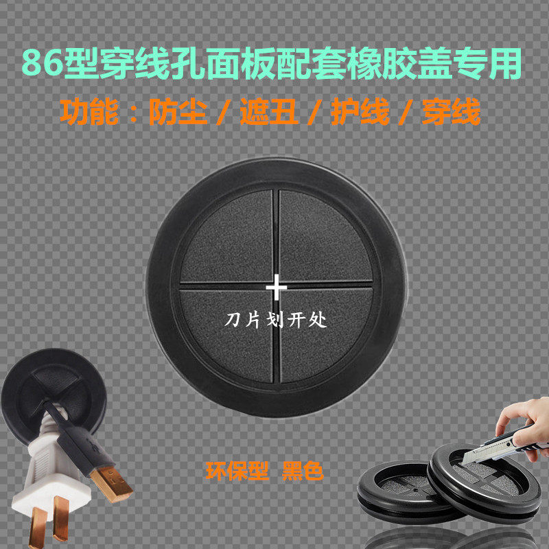 Type 86 threading hole panel is matched with silicone ring TV wall plugging hole dust shielding wire rubber outlet cover