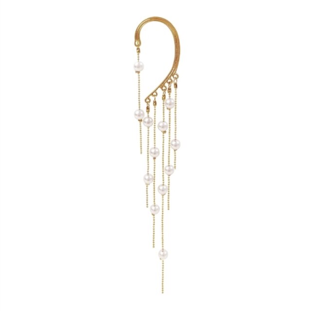 Advanced New Temperament Pearl Streaming Suear Clips Ear Hung Without Ear Clip Tide Long Version Hyperbole Earrings Woman