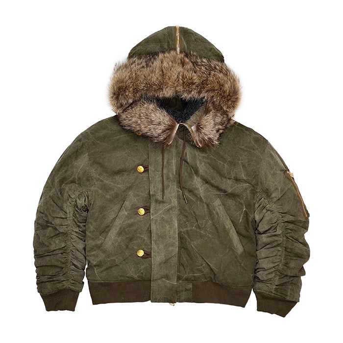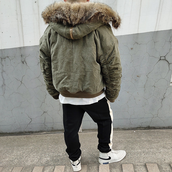 MKSZY independent Readymade style army cloth wolf fur collar fur N2B flying jacket warm cotton coat