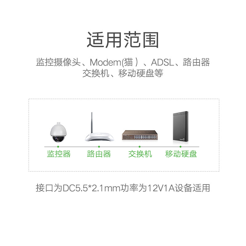 Green Union 12v1a power supply adapter DC5 5 * 2 1 Router switch carry-on hard disc surveillance photographic lens