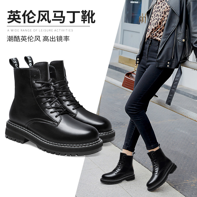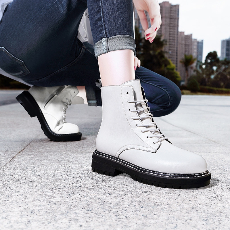 White Martin Boots Woman Flat Bottom Short Boots Woman Single Boots 2021 New Genuine Leather Thick Bottom Short Barrel Women Leather Boots Spring Thin
