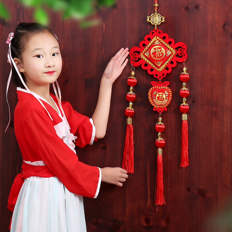 New Year Chinese knot Two-sided Fucalligraphy pendant Qiao relocating to new residence Living room decoration Large number Xuanguan Indoor small hanging decoration