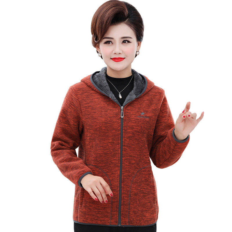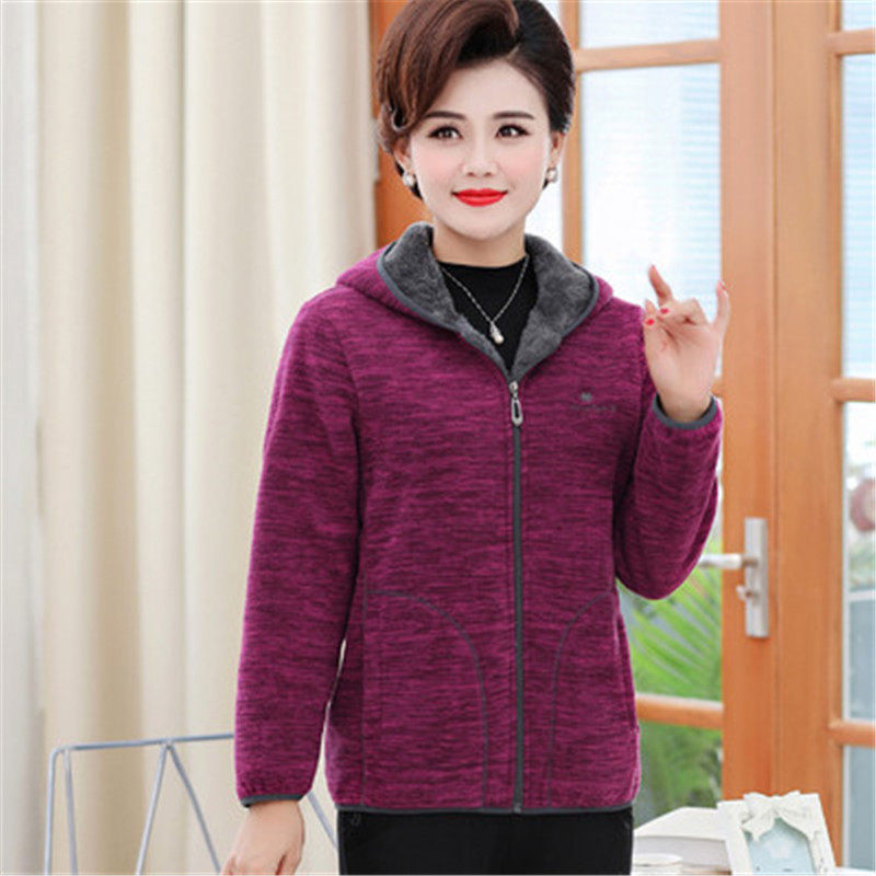 Fat plus size autumn and winter middle-aged women's fleece jacket hooded velvet thickened fleece mom cotton coat