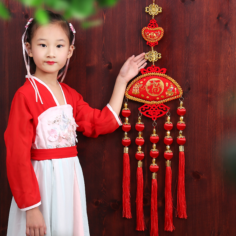 New Year Chinese knot Two-sided Fucalligraphy pendant Qiao relocating to new residence Living room compartment Xuanguan decoration large number Heqing Xiaohang decoration