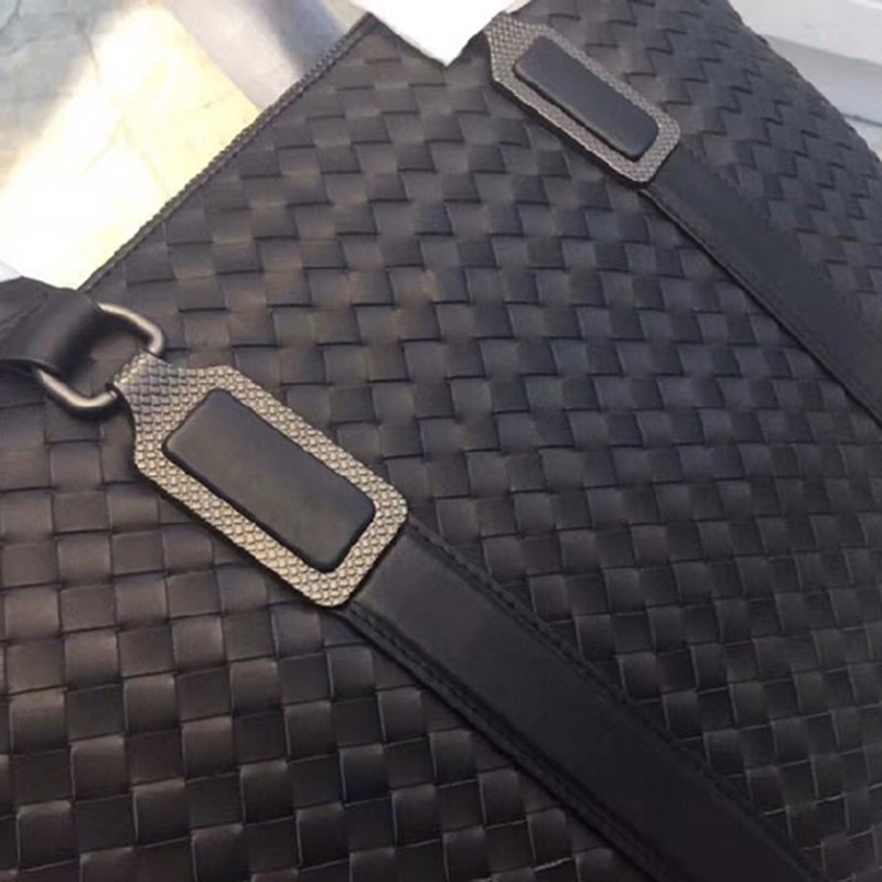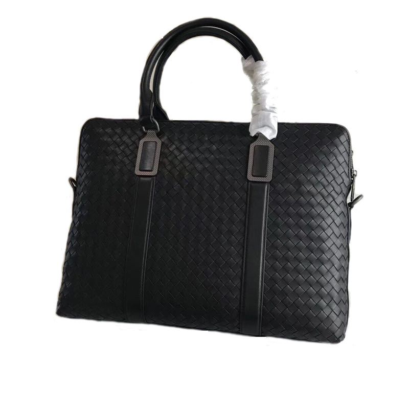 Light luxury bull skin knitting men's bag 2023 new fashion business double - zip label laptop package single shoulder package