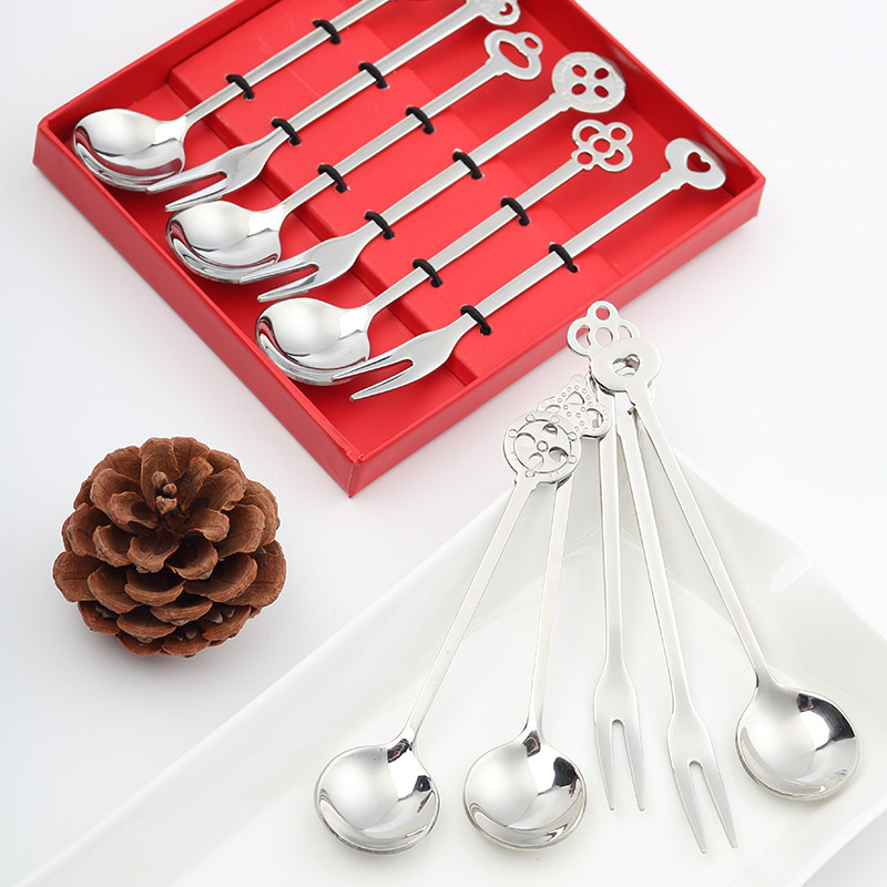 Eurostyle Small Extravaganza 6 Fruit Fork Suit Creativity Cute 304 Stainless Steel Sweet Spoons Coffee Spoon Snack