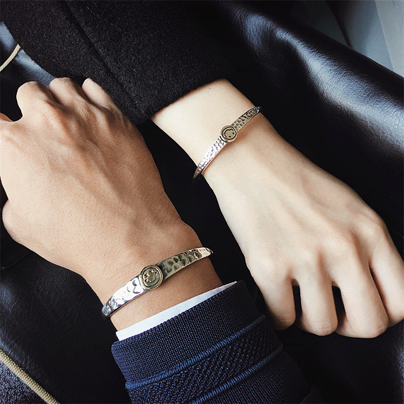 ins silver bracelet women's pure silver Valentine's Day Christmas gifts for boys pure silver lovers smiling face bracelets can be lettering
