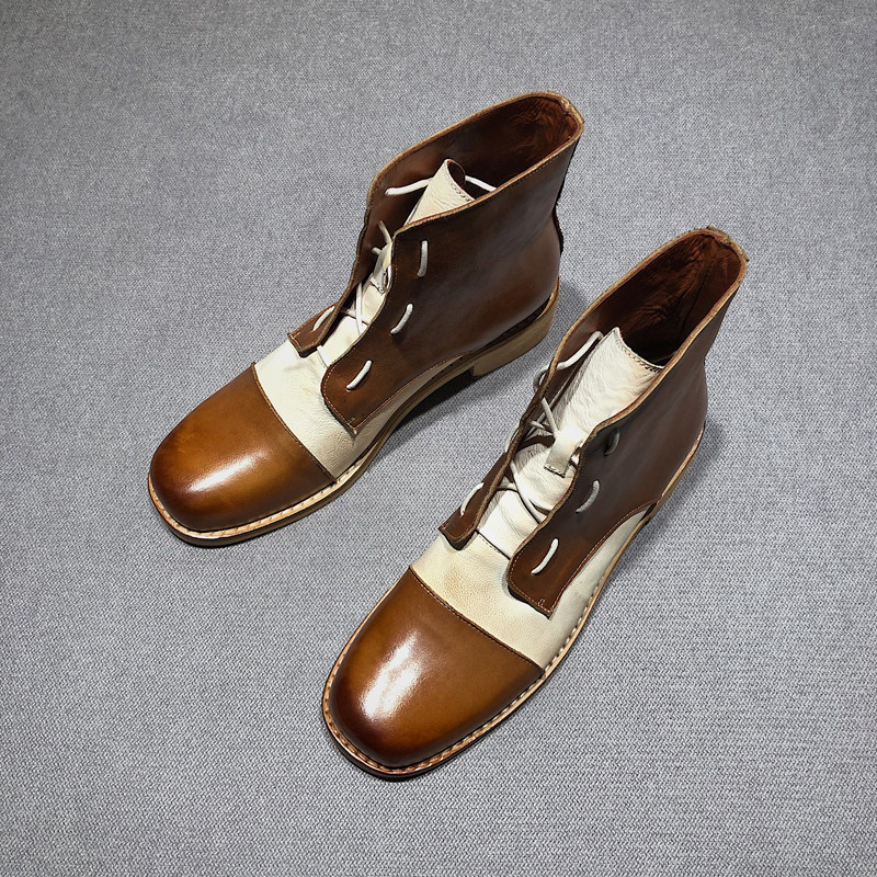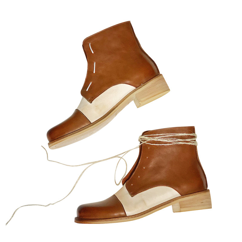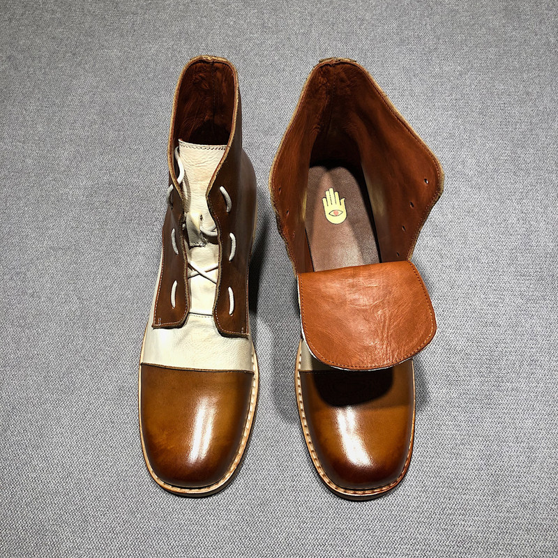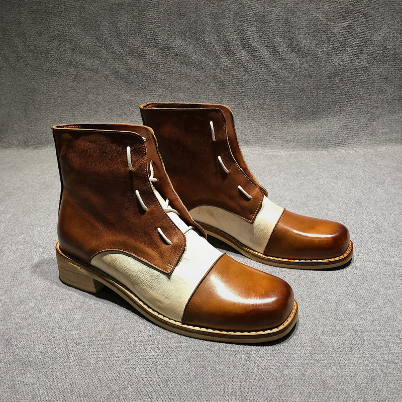 Ding Yin Studio ) Original niche color color color color color old square boots female flat - bottom Martin boots riding boots