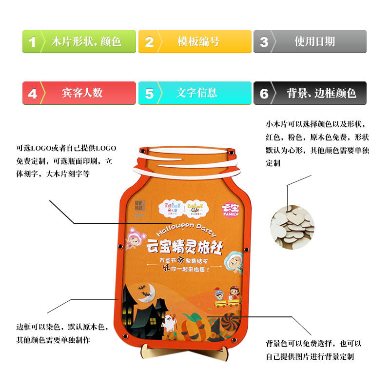Halloween cartoon signature photo frame custom fingerprint carnival party event dance party sign-in table creative wood chips