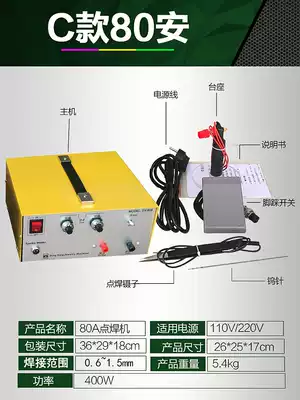 A 30 A spot welding machine B 50 A spot welding machine C 80 A spot welding machine hand-held welding gun A spot welding needle A spot welding tweezers A goggles A new 100 A high power spot welding machine