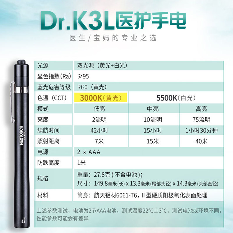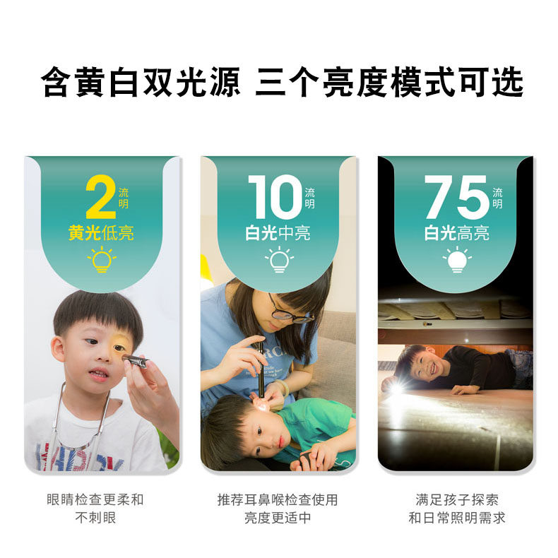 Medical pupil pen ear, nose and throat doctor nurse portable pen type flashlight yellow and white double light with scale medical pen lamp
