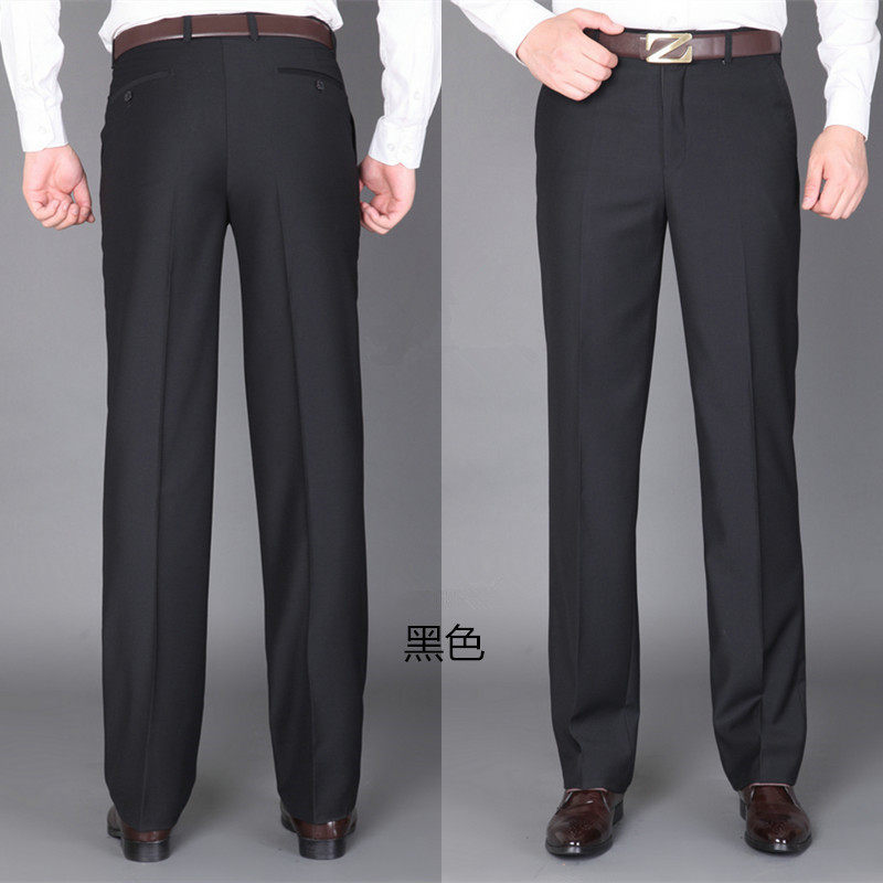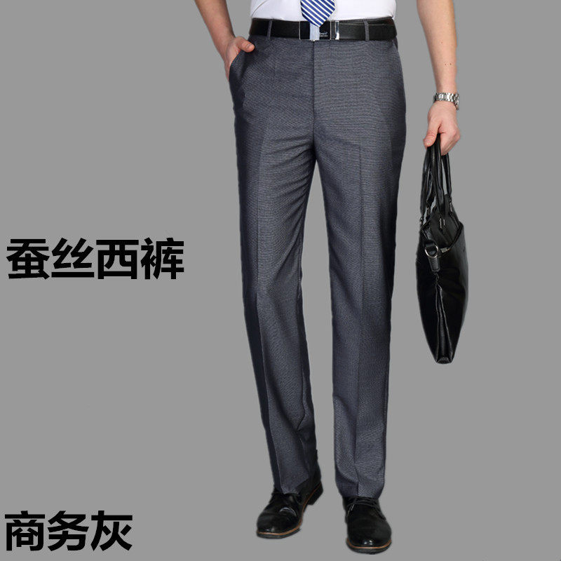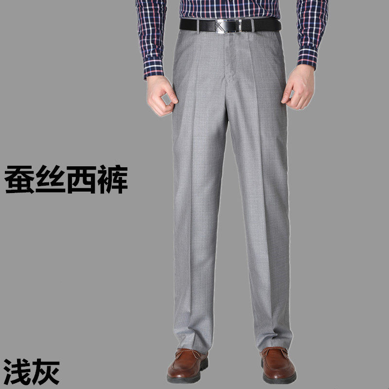Summer thin men's mulberry silk trousers Business straight suit pants Middle-aged loose high-waisted non-ironing suit pants