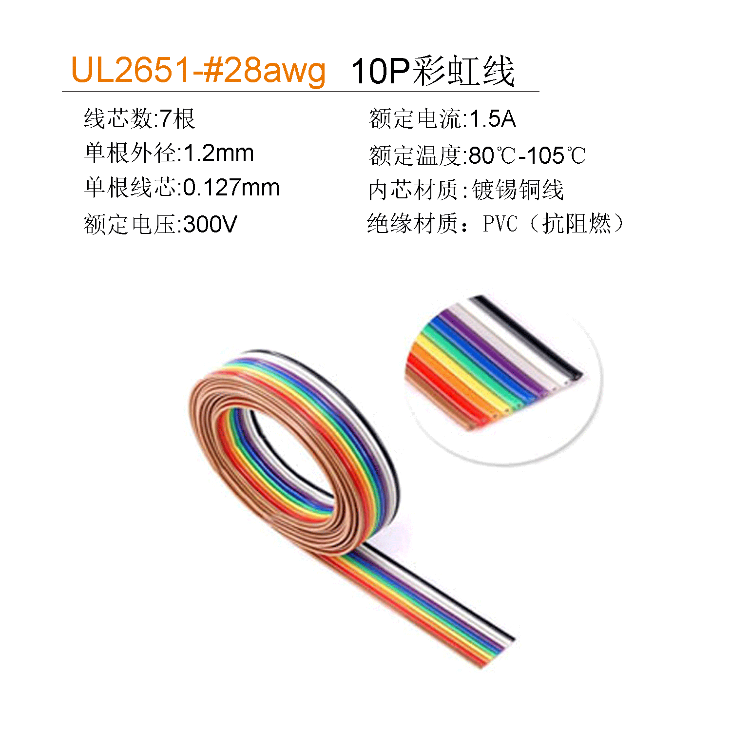 UL2651 UL2651 28awg Colour flat cable 1 27mm 10P 10P (10 lines) Colour pressure line 2 54mm 1 m
